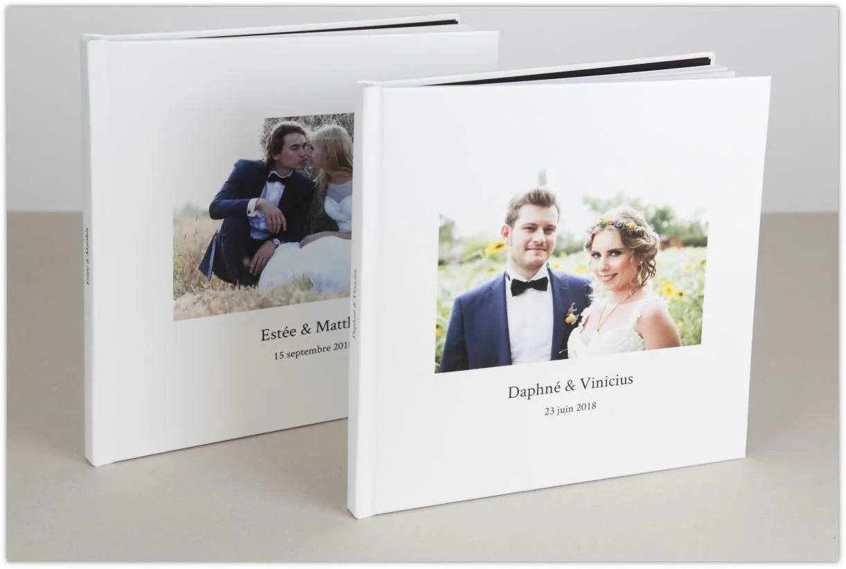 C’est un livre photo avec une couverture rigide cartonnée assurant une certaine longévité. Elle est personnalisable avec vos initiales. Vous pouvez également choisir la couleur de toile Buckram . Cette toile est enduite d’une de protection contre les salissure.